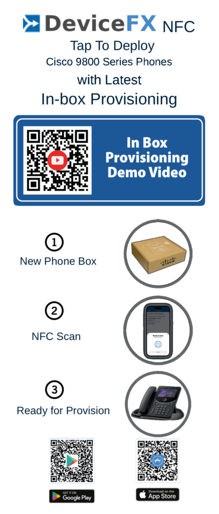 Introducing the DeviceFX NFC mobile application, for both iPhone and Android devices. Enables in-box provisioning and works with Webex Calling Multi-Tenant.